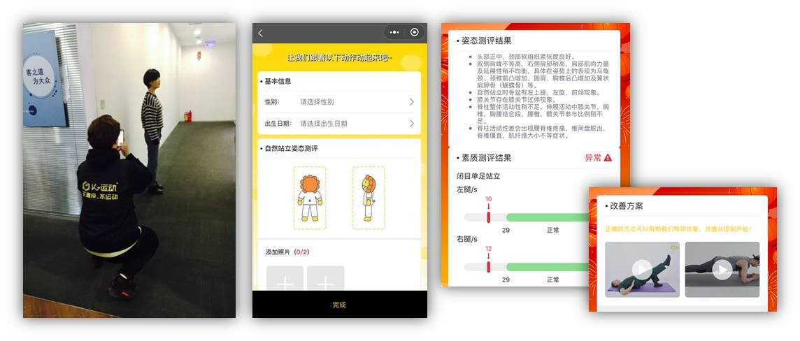 KG運動本次帶去的“身體活動能力智能測評mini版”,是面向所有人群的運動前身體評估工具。通過AI技術(shù)實現(xiàn)智能手機遠程測試數(shù)據(jù)采集、客戶自主測評、系統(tǒng)實時反饋測評結(jié)果及運動改善方案。