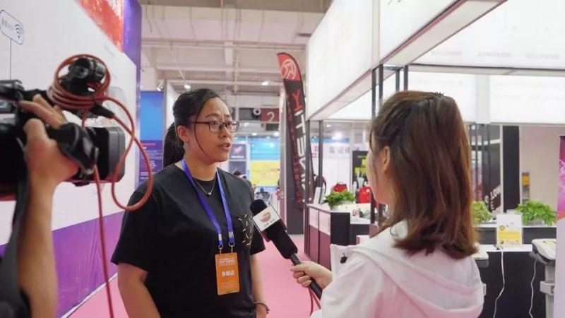 展臺負責(zé)人正在接受當(dāng)?shù)孛襟w采訪